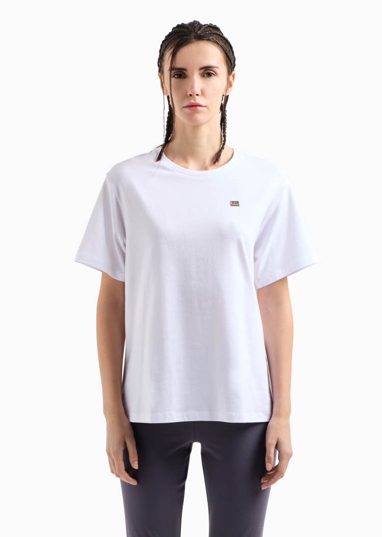 女士合身短袖圆领刺绣标识轻薄T恤衫